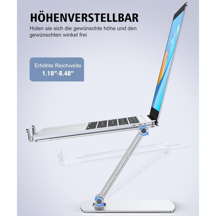 - [Einstellbare Flexibilität und Ergonomie] Dank der einstellbaren flexibilität und ergonomie können sie den winkel und die höhe Ihres laptops ganz einfach an Ihre bedürfnisse anpassen, um Ihre körperhaltung zu verbessern und Rückenschmerzen zu reduzieren. Mit einem einstellbereich der bildschirmhöhe von 1,18 bis 8,48 zoll bietet dies er monitorständer mehrere anpassungsoptionen, die ergonomischen arbeitspositionen entsprechen.
