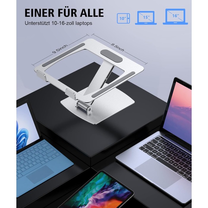 - [Breite Kompatibilität und Vielseitigkeit] Dieser laptop erhöhung für schreibtisch ist weitgehend kompatibel mit 10-16-Zoll-Laptops und tablet-PCs, was ihn zu einem vielseitigen und nützlichen zubehör für alle macht, die häufig mit diesen geräten arbeiten. Er ist ideal für den einsatz in einer reihe von umgebungen, einschließlich büros, besprechungsräumen, wohnzimmern, bibliotheken, cafés und küchen.