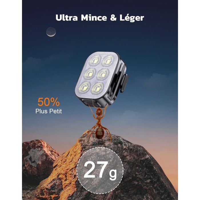 - [Conception Ultra Fine et Portable] Cet ensemble de lumiere velo avant et arriere 2023 présente une conception élégante et compacte, avec une épaisseur de seulement 1,7cm et un poids de 27g. Il ne prendra pas beaucoup de place sur votre vélo. Le facteur de forme mince vous permet de le glisser facilement dans n'importe quelle poche de poitrine ou de jeans, ce qui en fait l'idéal pour les activités de plein air, le camping ou les voyages.